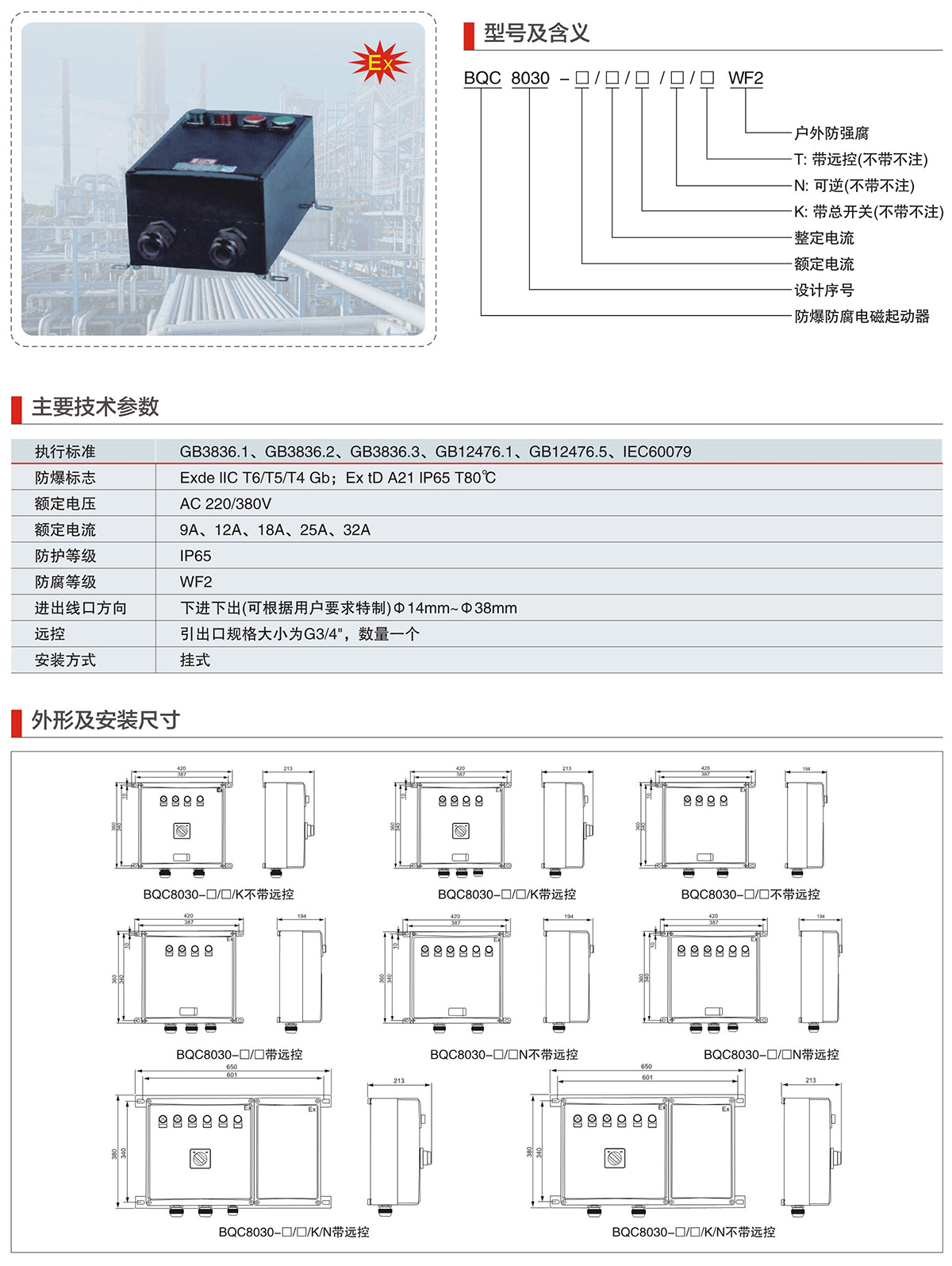 BQC8030系列防爆防腐电磁起动器(IIC、Ex Td)