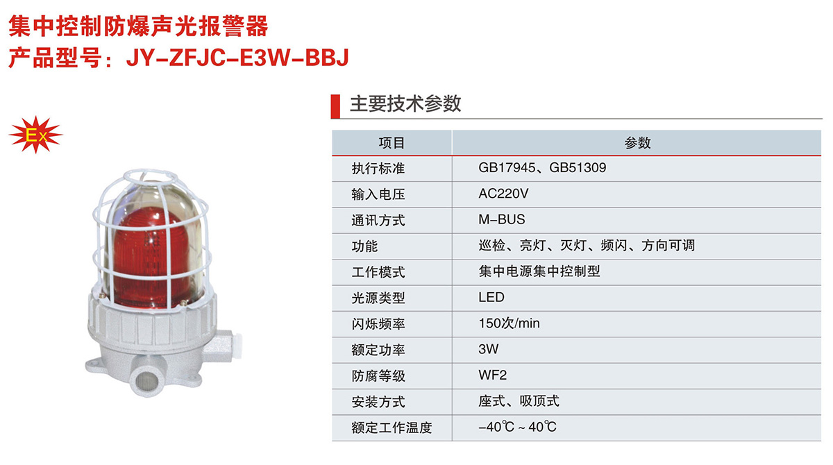 JY-ZFJC-E3W-BBJ系列集中控制防爆声光报警器