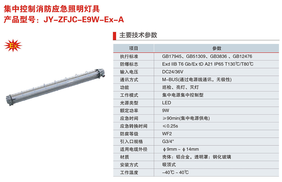 JY-ZFJC-E9W-Ex-A系列集中控制消防应急照明灯具