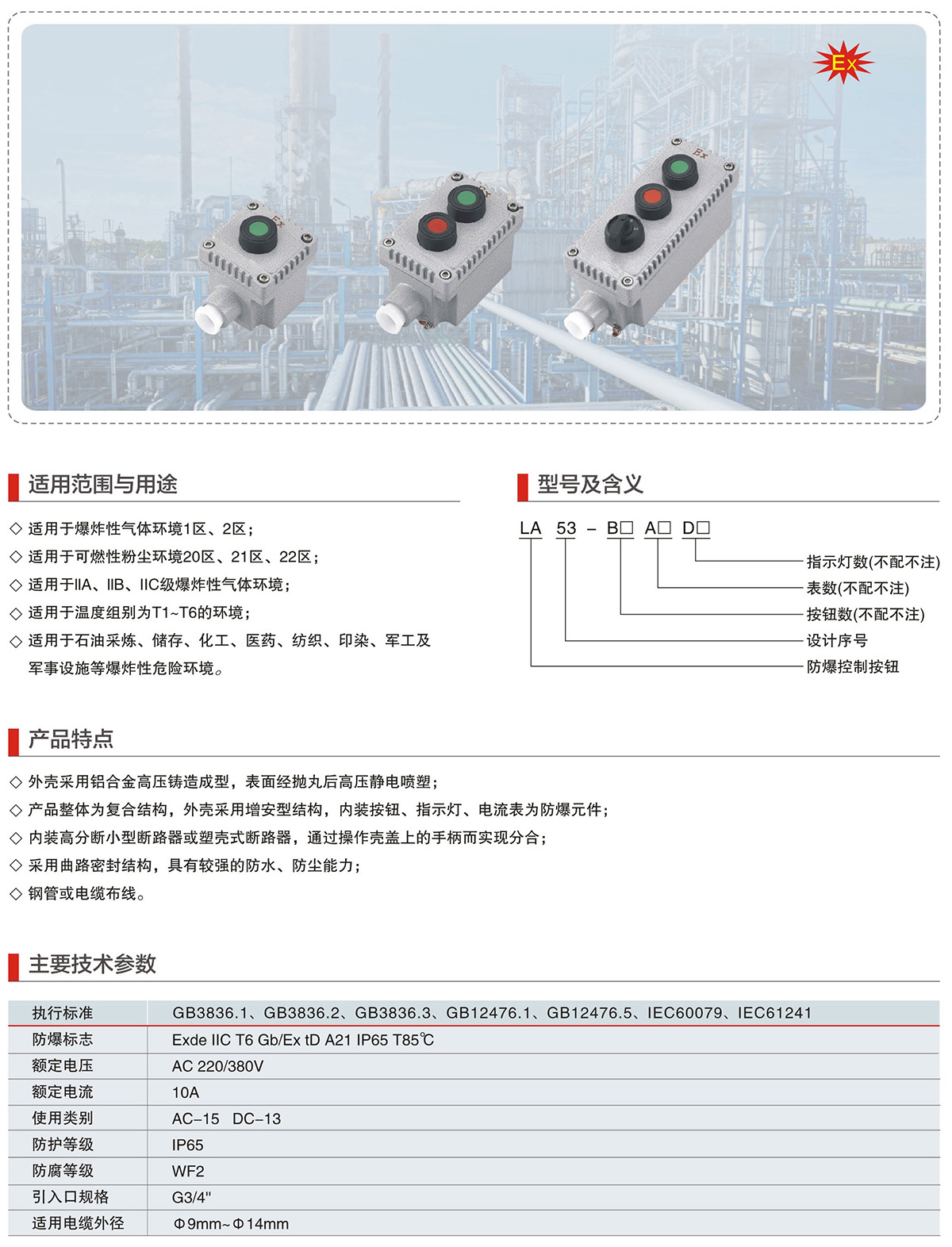 LA53系列防爆控制按钮(IIC、Ex tD)