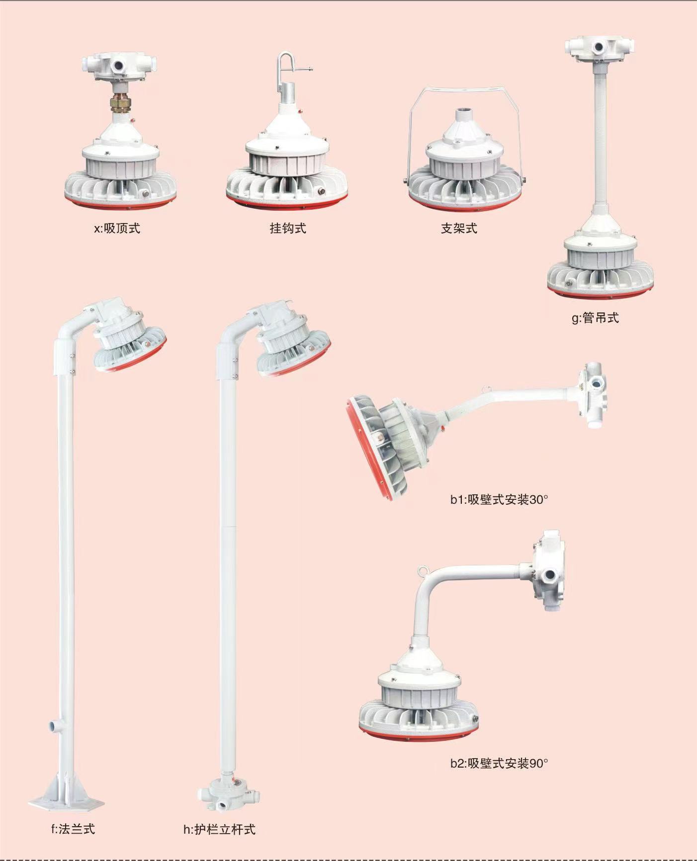 圆形新款LED防爆灯,市场LED防爆灯多的不在期数,无非也就是圆形和方形两款LED防爆灯,如今的市场被一些商家把价格做的乱七八糟,公司为了市场推进不断在更新换代中,圆形LED防爆灯就已经换了三四波了,终定款的这款LED防爆灯无论在美观上,还是在使用体验感上,还是在价格上都有着不错的反馈,用户非常满意,此款LED防爆灯采用知名品牌芯片、电源,质量相当的稳定,在设计研发中工程师专门对散热方面了做深刻的探讨,散热效果非常不错。当然此款LED防爆灯的安装方式同比其他款式的LED防爆灯安装方式都是一样,也有壁式、吸顶式、吊管式、法兰式、护栏式等多种安装方式,以下安装图供大家参考,在订购的时候一定说明安装方式,销售人员会根据你的安装方式给匹配安装配件。